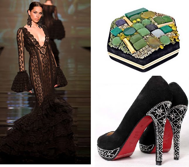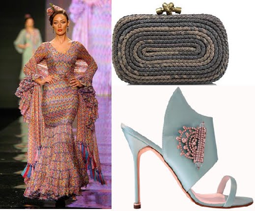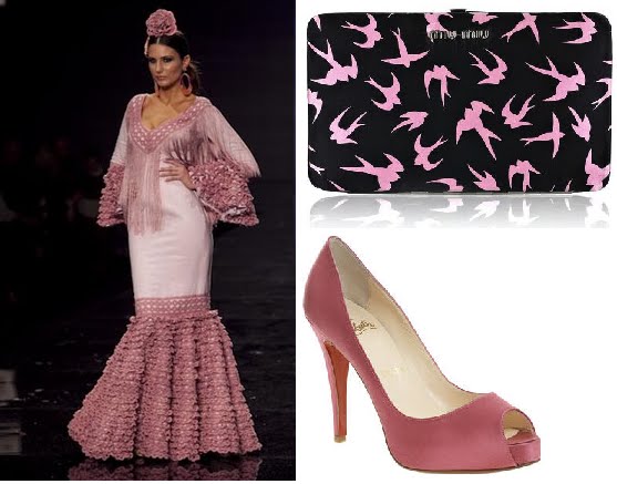 Moda flamenca y otros complementos: Traje de Nuevo Montecarlo + cartera de Miu Miu + zapatos de Louboutin